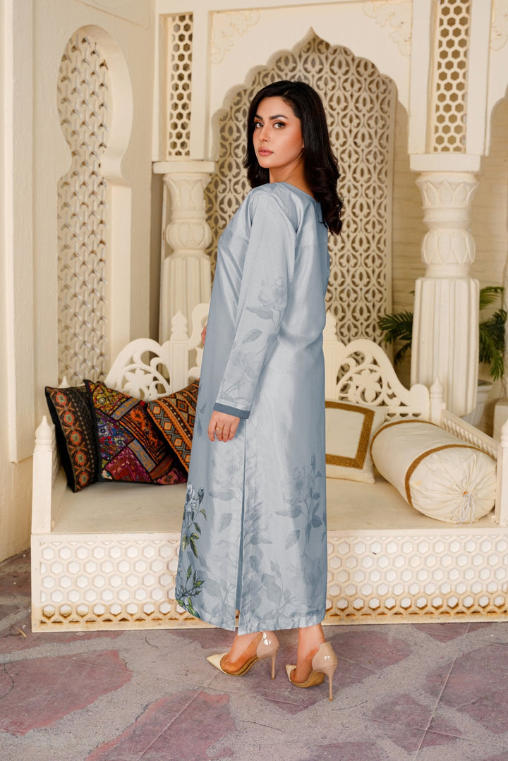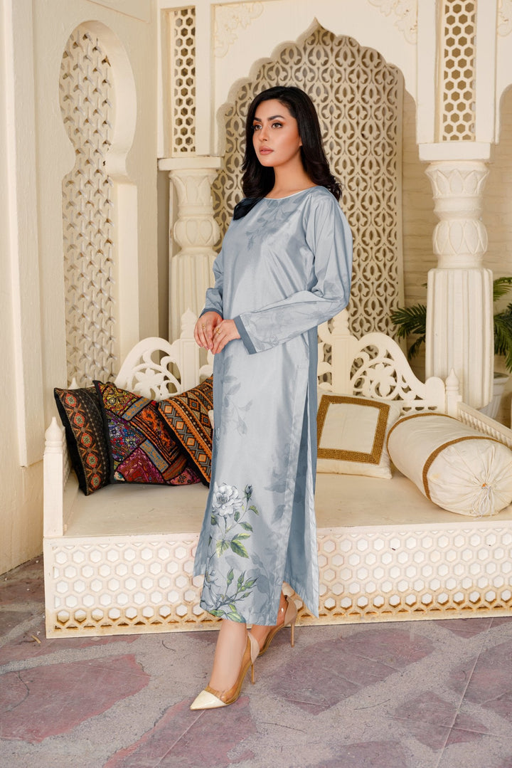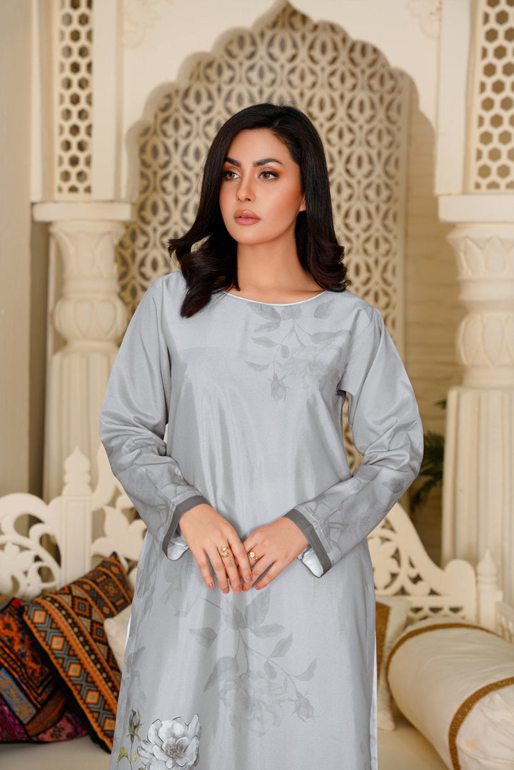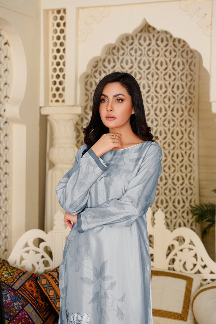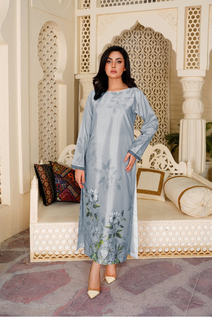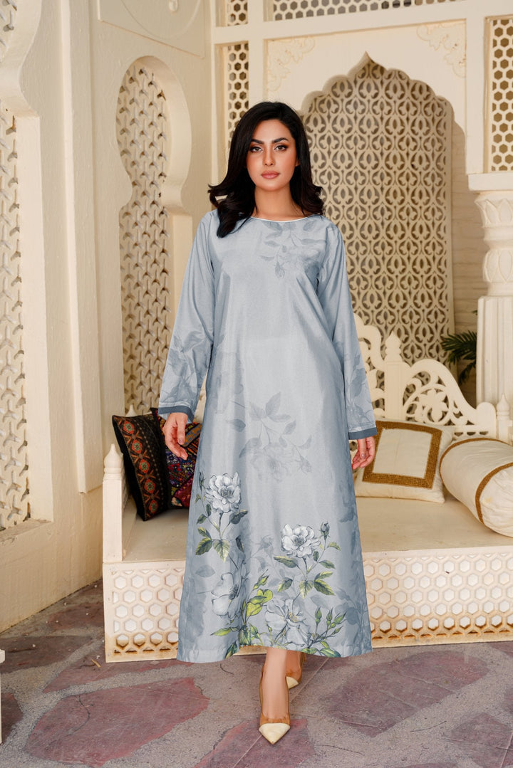 Made with ultra-soft, breathable fabric, this grey colour dress flows effortlessly whether you’re lounging at home, working from your cozy corner, or stepping out for errands. The subtle structure and flattering length make it one of the most versatile ladies tops online Pakistan.