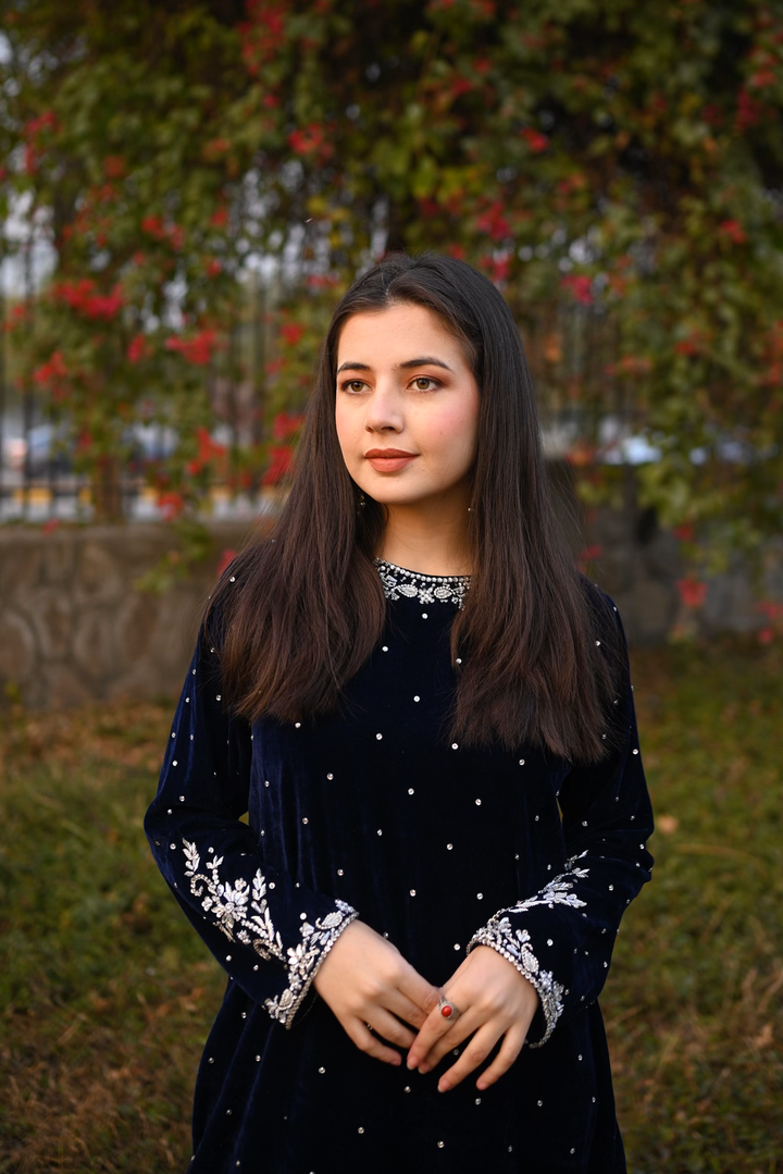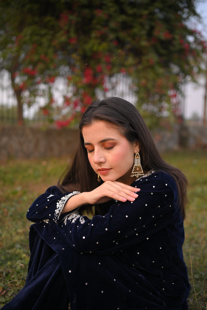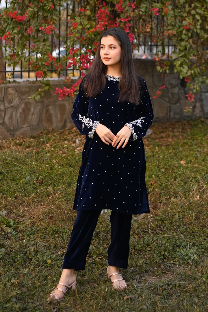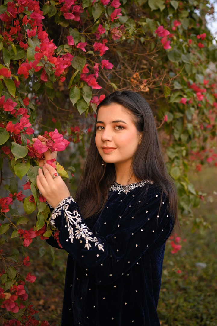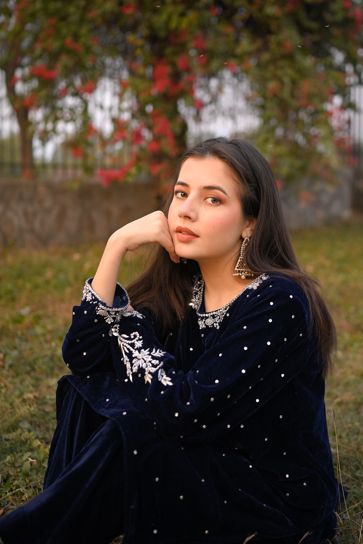 Its flattering silhouette and intricate detailing make it ideal for festive gatherings, dinner parties, or even cozy family get-togethers. Whether you're curating your seasonal wardrobe or shopping from a velvet dresses online sale, this piece captures the essence of sophisticated winter fashion in Pakistan.
