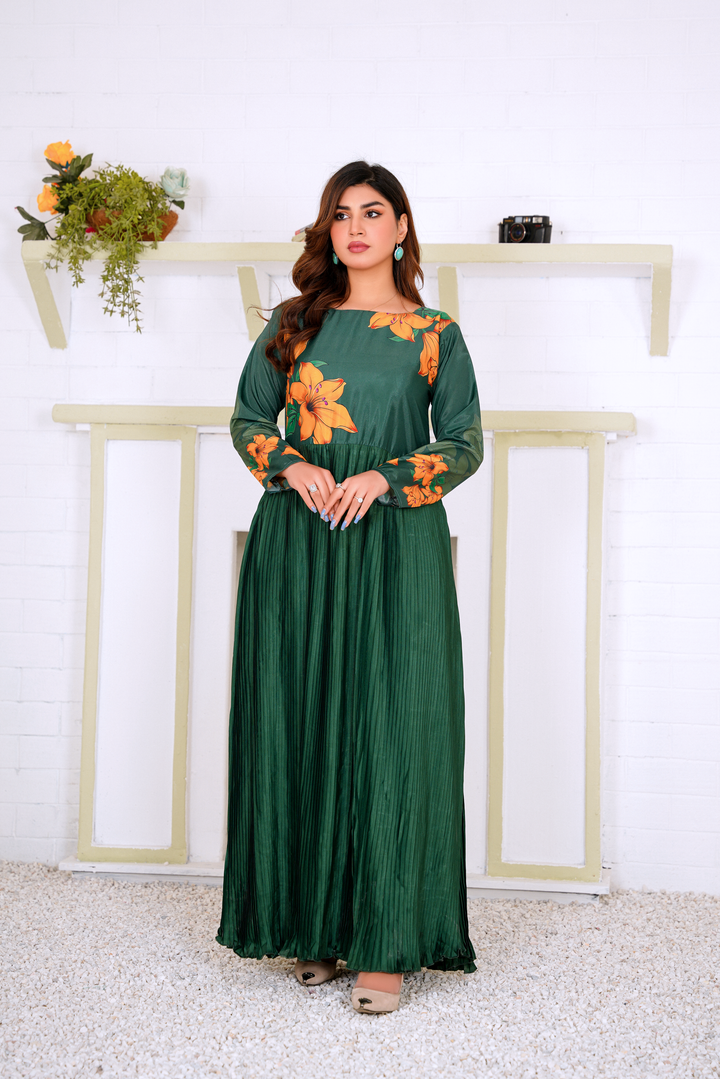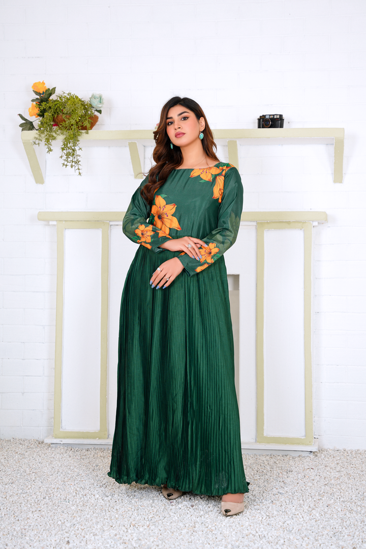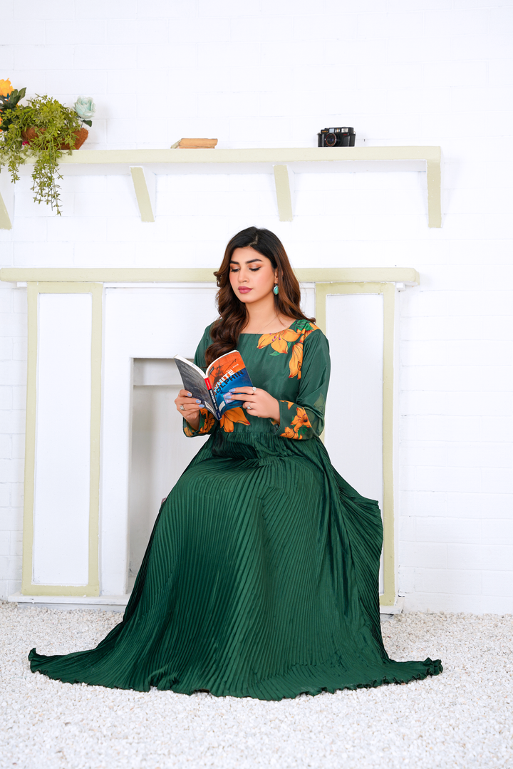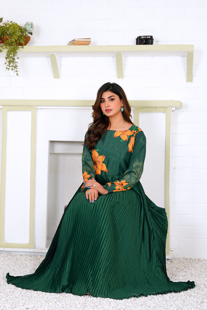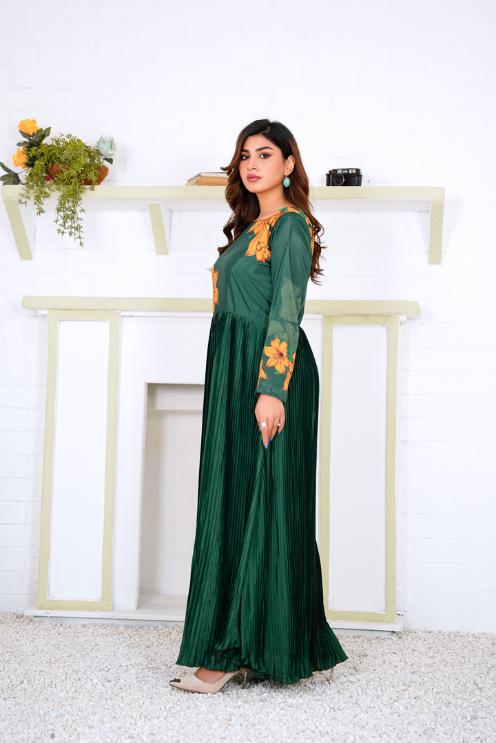 Greta: Green Plated Floral Maxi - 383