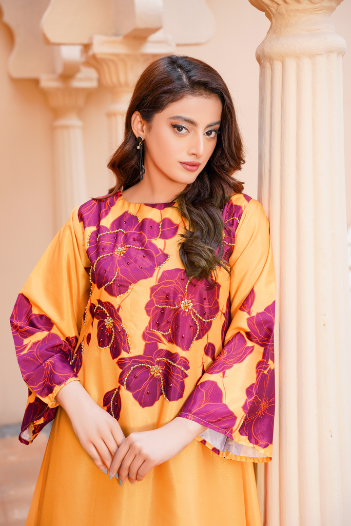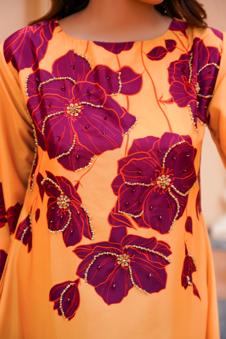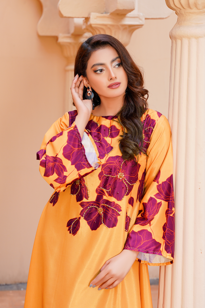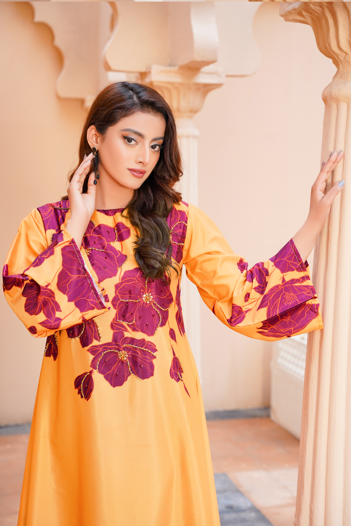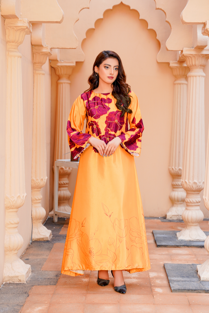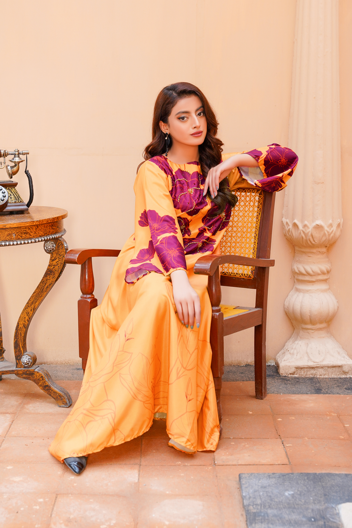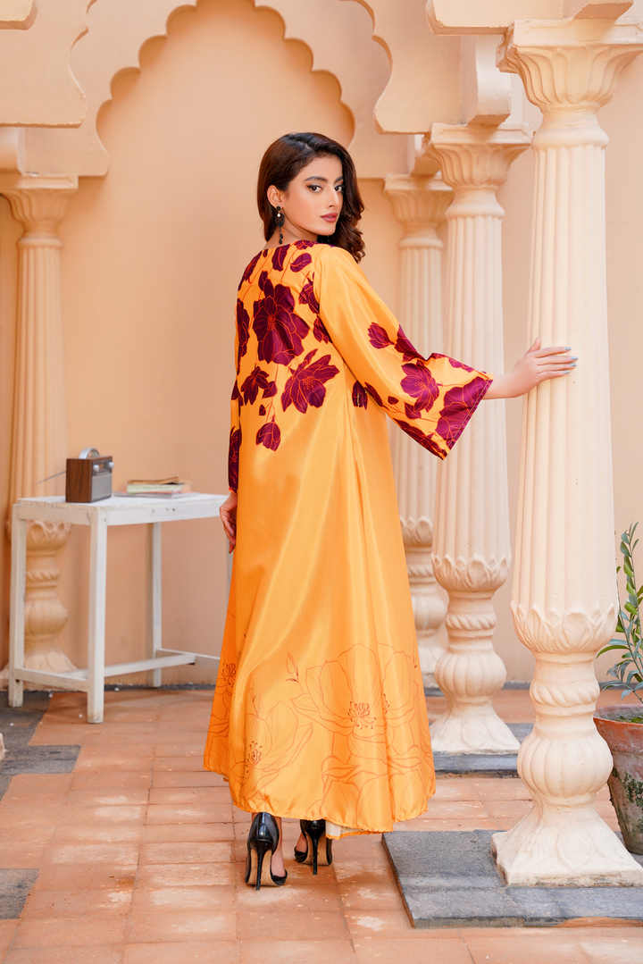 Give your wardrobe a refreshing twist with Athena’s floral georgette frock — a timeless staple for every style-forward woman. Designed in a flowy silhouette, this outfit highlights a refined georgette frock design adorned with soft floral print, making it an ideal pick for brunches, evening gatherings, or festive occasions. The piece bridges the gap between traditional modesty and modern flair, offering one of the most sought-after long frocks in Pakistan today.