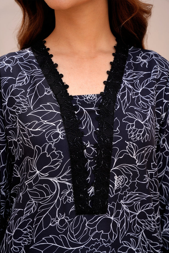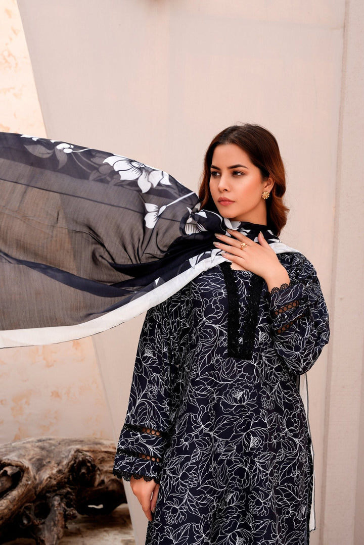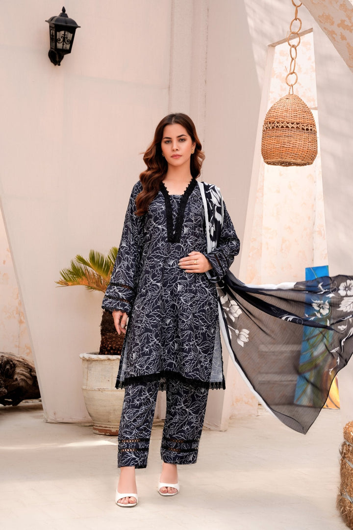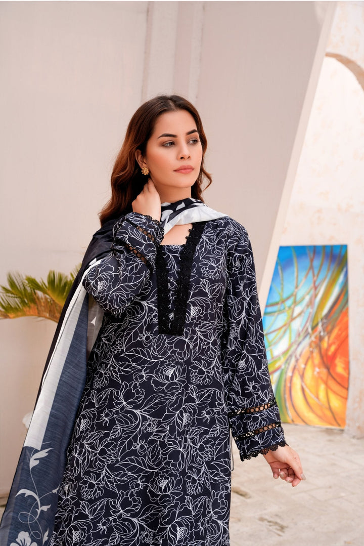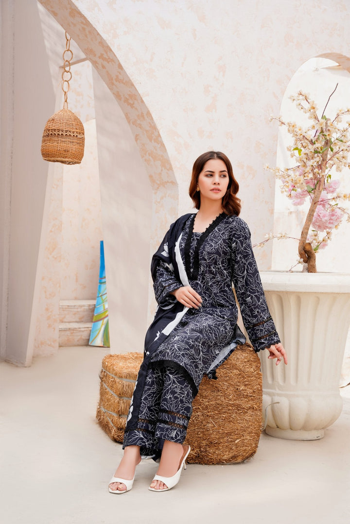 Tailored to provide comfort and class, this ensemble captures the essence of everyday luxury. Whether you're updating your wardrobe or looking for something refined yet practical, this black lawn suit offers a versatile option for the season.