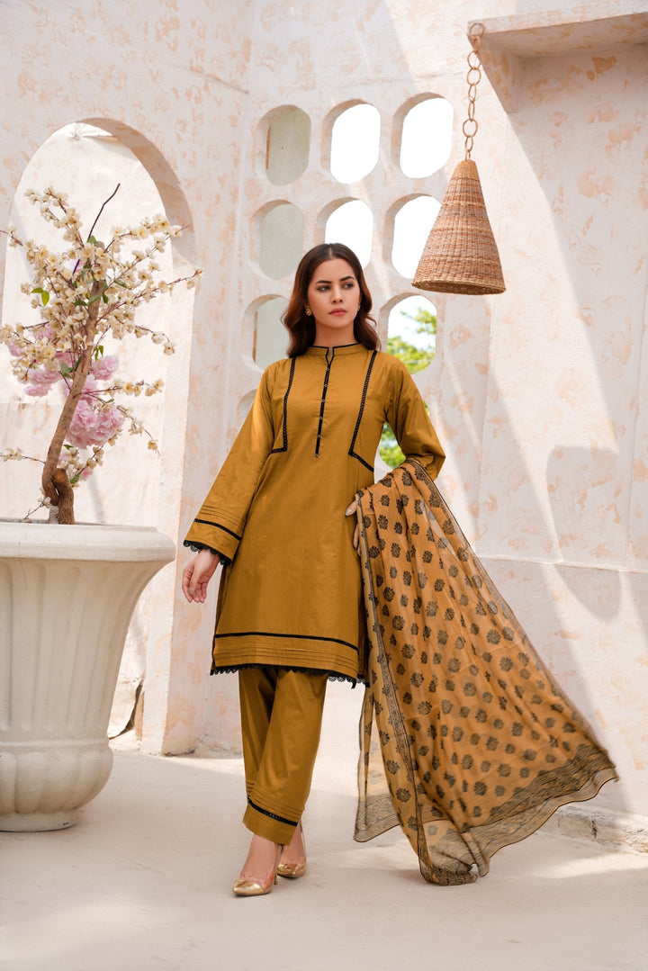 This is not just another suit—it's part of the latest Pakistani dress designs, tailored for women who prefer timeless elegance with a fresh touch. The plain suit with printed dupatta adds just the right amount of flair while keeping it classy.