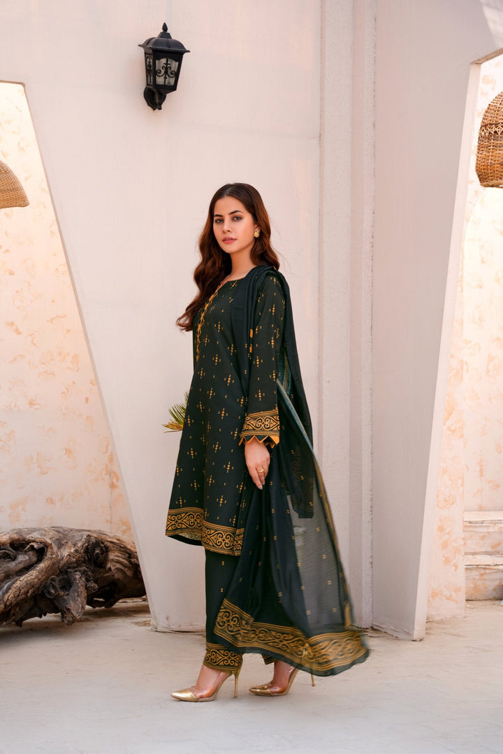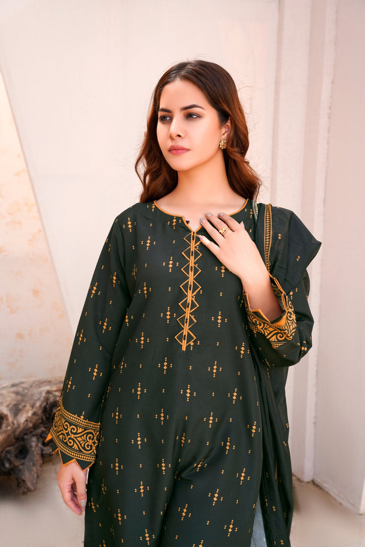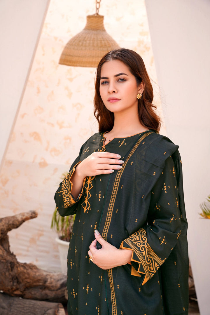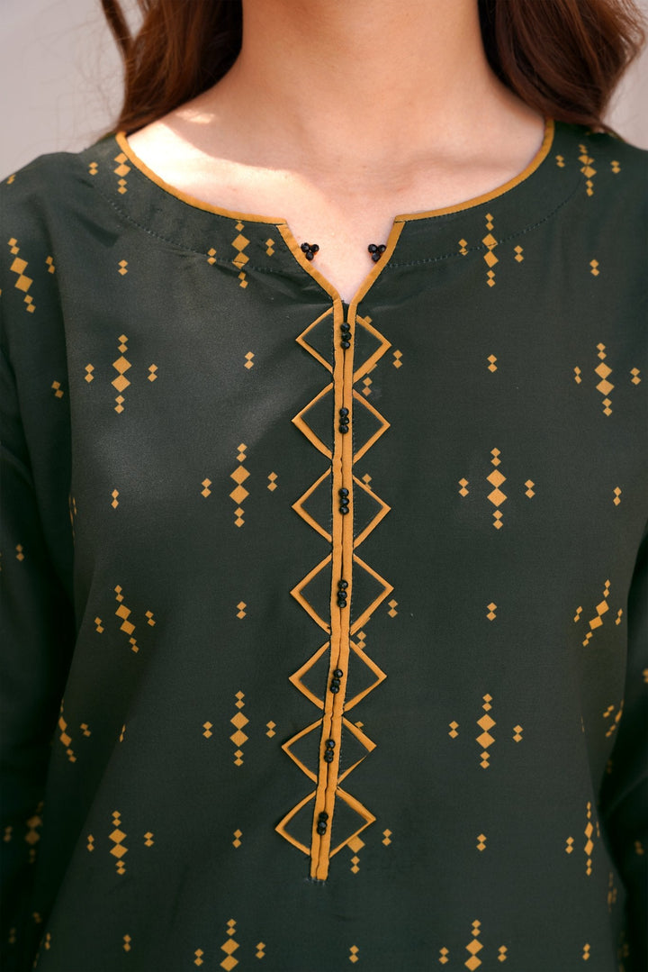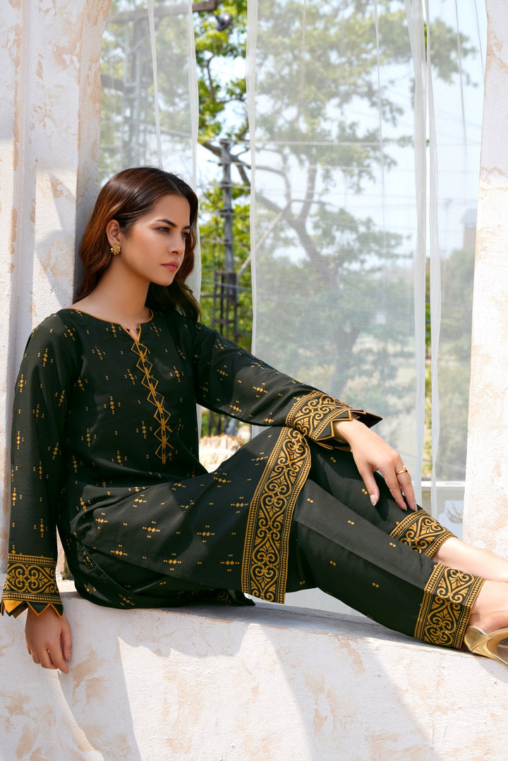 Bring timeless charm and trend-forward fashion into your wardrobe with Athena’s 2 piece dress design in a rich dark green hue. Tailored for the modern woman, this stylish kameez design pairs beautifully with a printed trouser, striking the perfect balance between comfort and elegance.