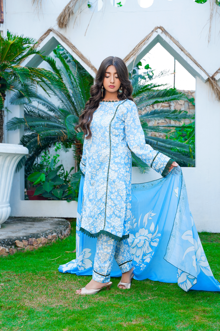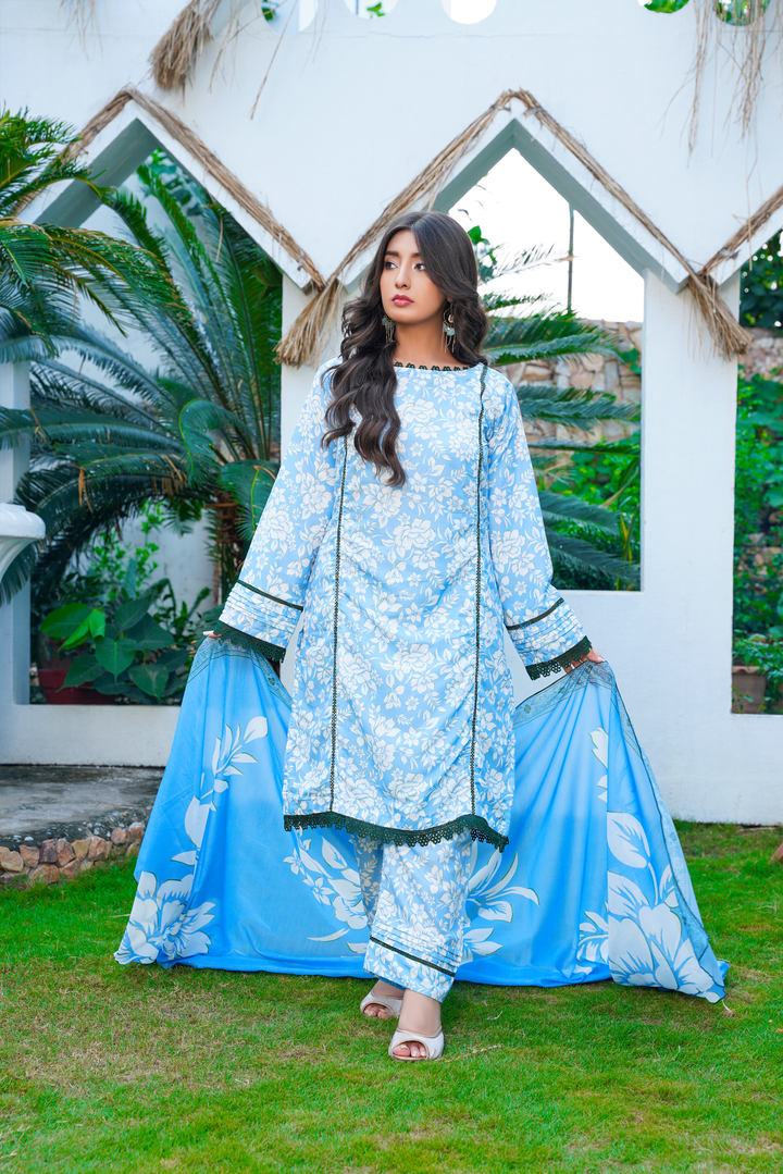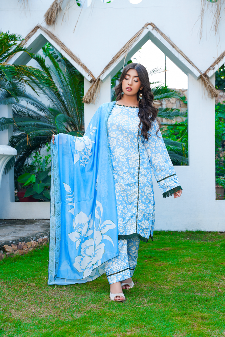 Discover timeless elegance with the Elizha —a breathable cotton dress perfect for warm weather and everyday grace. This flowy silhouette adds a modern touch to classic eastern fashion, blending the charm of printed lawn suits designs with minimalist flair.