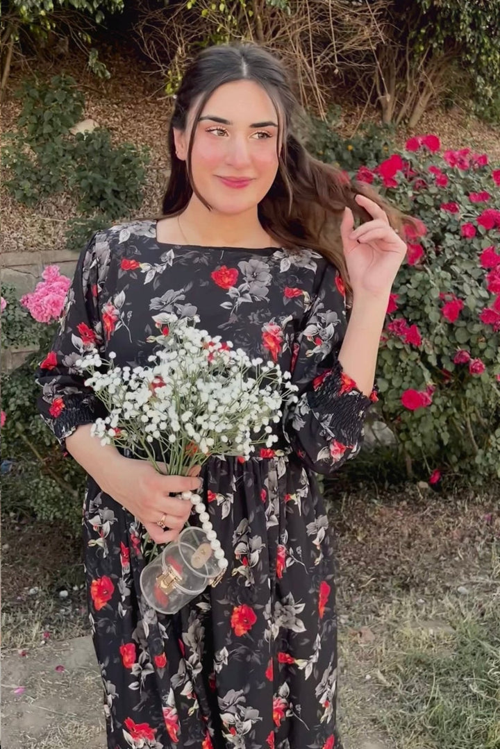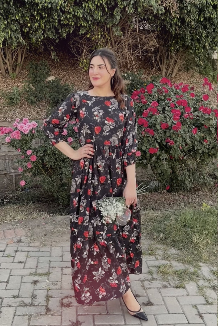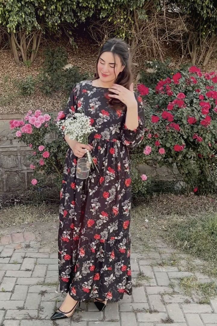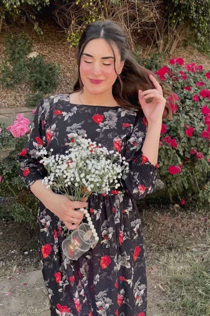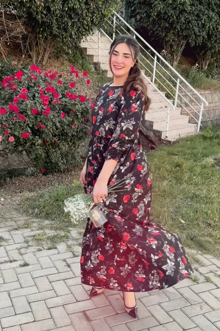 Step into elegance with Athena’s latest black frock design that perfectly blends timeless charm with modern flair. Featuring delicate floral frocks patterns and flowing maxi styles, this outfit is crafted to elevate your everyday and occasion wear. The silhouette follows a flattering western frock design, ideal for girls and women who love to keep it classy yet trendy. Whether you're heading to a dinner, a casual get-together, or a festive event, this frock offers versatility, comfort, and standout style. Designed with high-quality fabric and attention to detail, it’s a must-have piece for every fashion-forward wardrobe in Pakistan.