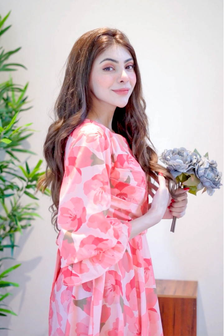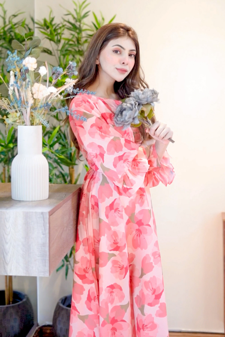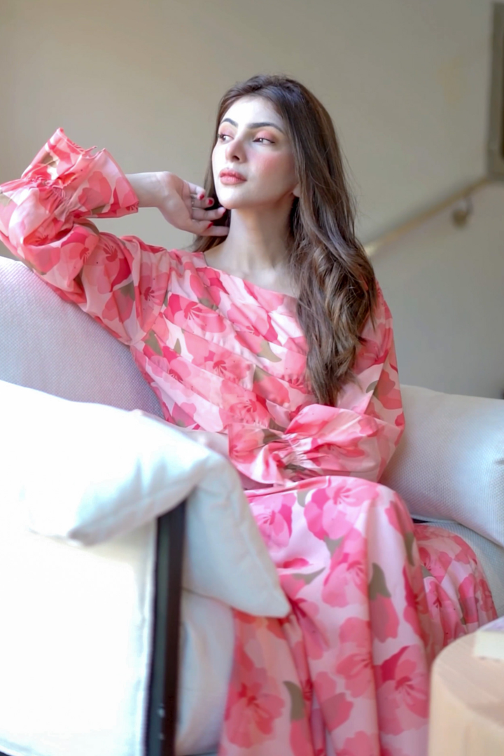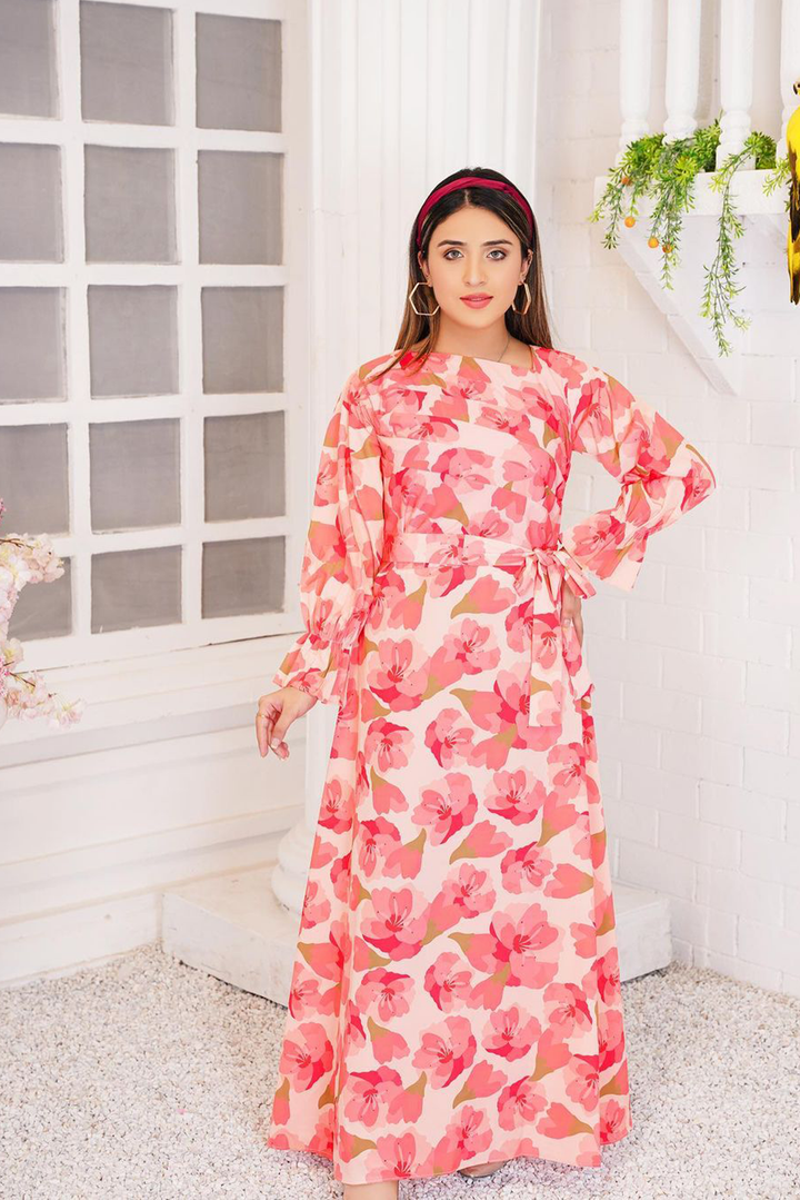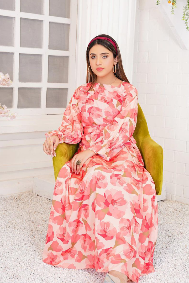 Embrace effortless elegance with Athena Apparels' Hazel Pink Floral Maxi. This summer frock for ladies showcases a soft pink hue adorned with a delicate floral design, capturing the essence of femininity and grace. Crafted from breathable fabric, it ensures comfort during warm days, making it an ideal choice for both casual outings and semi-formal events. The maxi's flowing silhouette reflects contemporary western dresses in Pakistan, offering a blend of traditional charm and modern style. Whether paired with sandals for a daytime look or heels for an evening gathering, this dress is a versatile addition to any wardrobe.