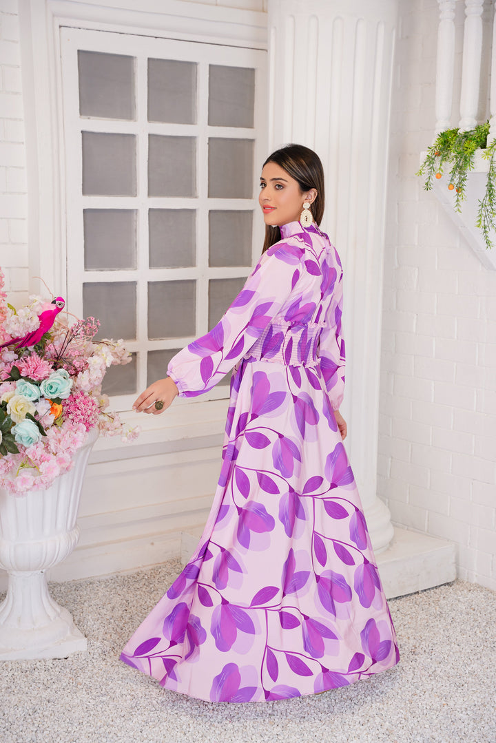 Elevate your wardrobe with Athena Apparels' Layla Front Frill Lavender Maxi. This light purple color dress features a delicate blend of lavender and mauve hues, offering a soft and feminine appeal. The peplum frock design adds a touch of modern elegance, while the front frill detail enhances its graceful silhouette. Crafted from high-quality fabric, this light purple dress ensures comfort and style, making it an ideal choice for various occasions. Whether you're attending a daytime event or an evening gathering, this lavender color dress promises to make a lasting impression
