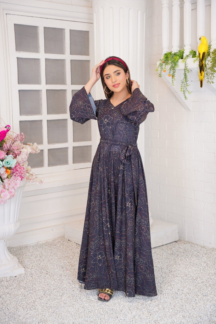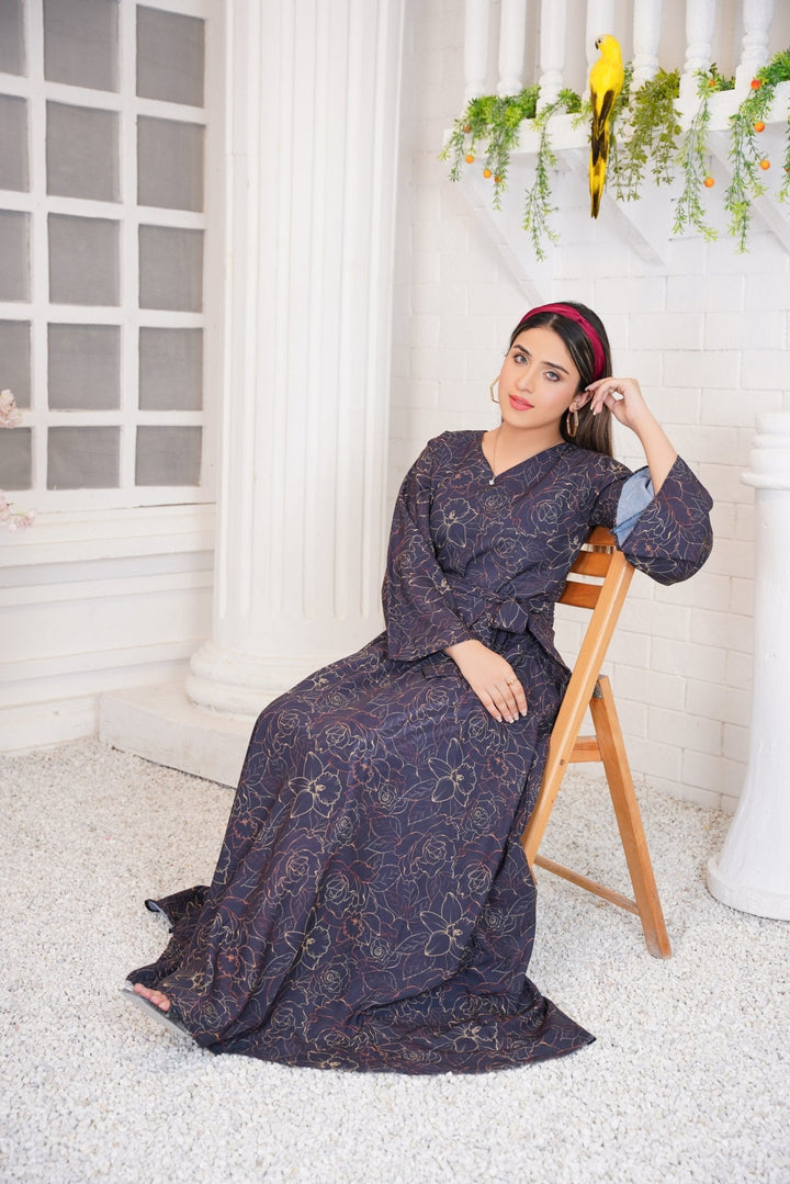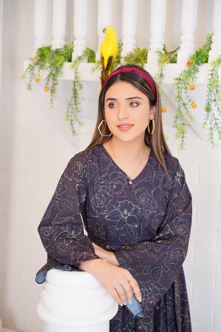Introducing the Haven Black and Gold Maxi - 337 by Athena Apparels—a sophisticated addition to your wardrobe that embodies the essence of black long frock designs. Crafted with precision, this Pakistani maxi dress showcases an elegant A-line frock design, ensuring a flattering fit for various body types. The dress features intricate printed patterns, adding a touch of artistry and cultural richness to the ensemble. Its simplicity and elegance make it a go-to choice for those seeking simple frock designs for girls that don't compromise on style. Whether you're attending a formal event or a casual gathering, this maxi dress offers versatility and grace, making it a must-have in your collection.