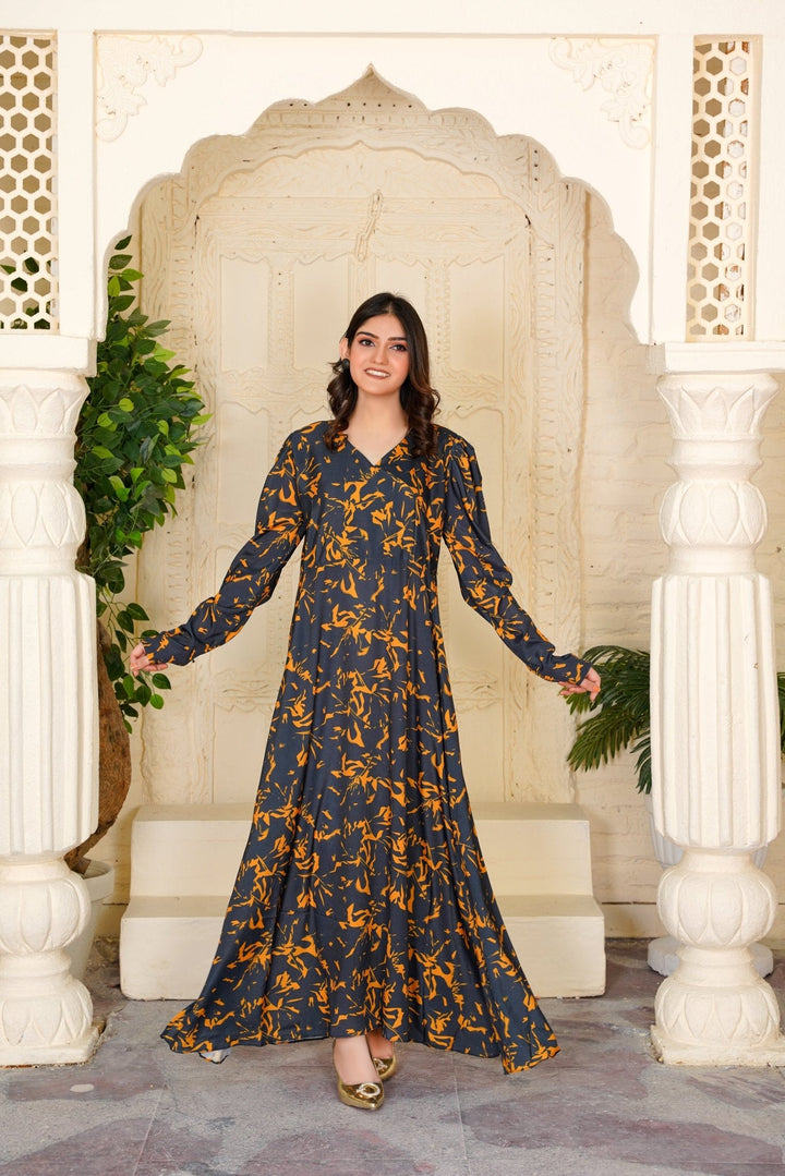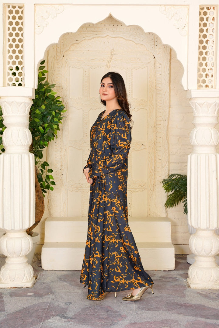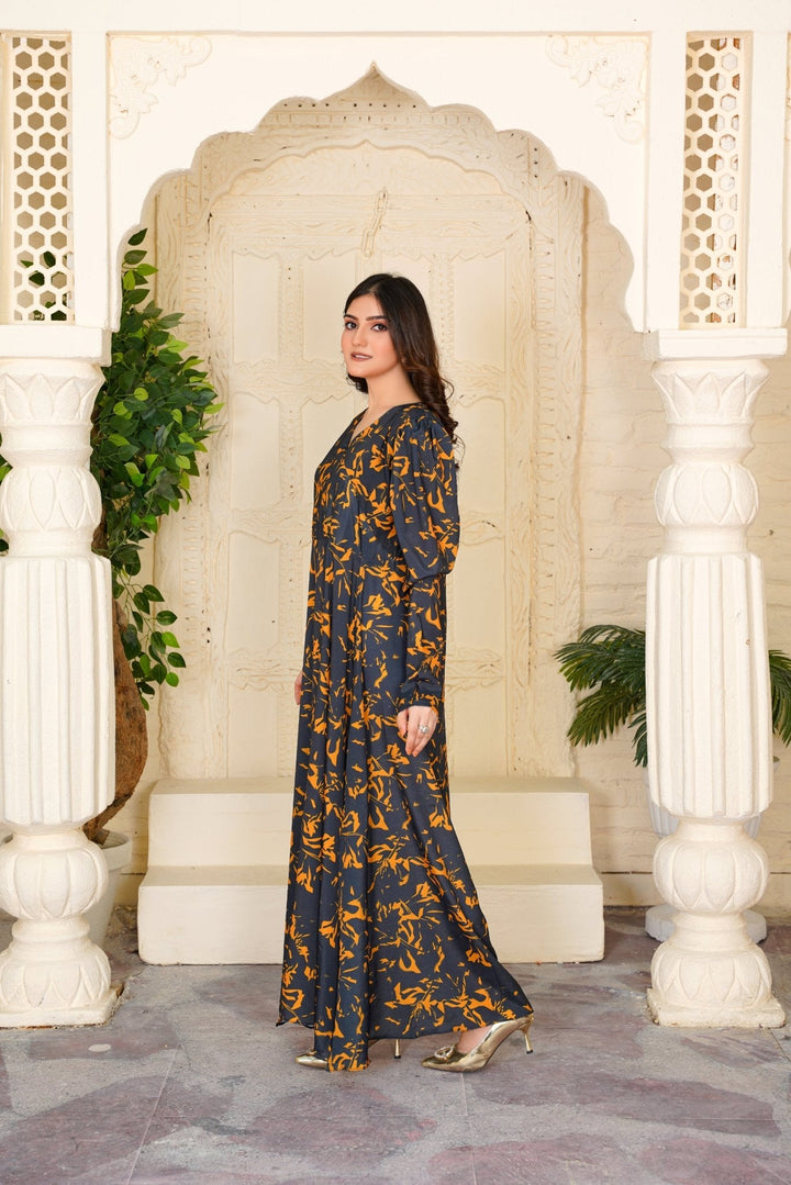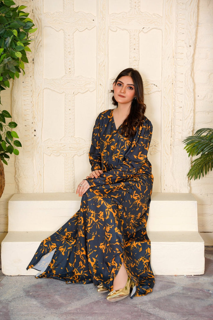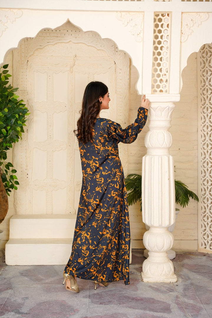 Introducing the Cecilia Black Amber Abstract Maxi – 354 by Athena Apparels—a masterpiece that redefines Pakistani gown style dresses. Crafted with precision, this dress showcases a contemporary Pakistani gown design adorned with abstract patterns in black and amber hues. The flowing silhouette and intricate detailing make it a stylish Pakistani frock design suitable for various occasions, from formal events to festive gatherings. Made from high-quality fabric, it ensures both comfort and elegance, allowing you to make a statement wherever you go. Elevate your wardrobe with this exquisite piece that embodies the essence of modern Pakistani fashion.