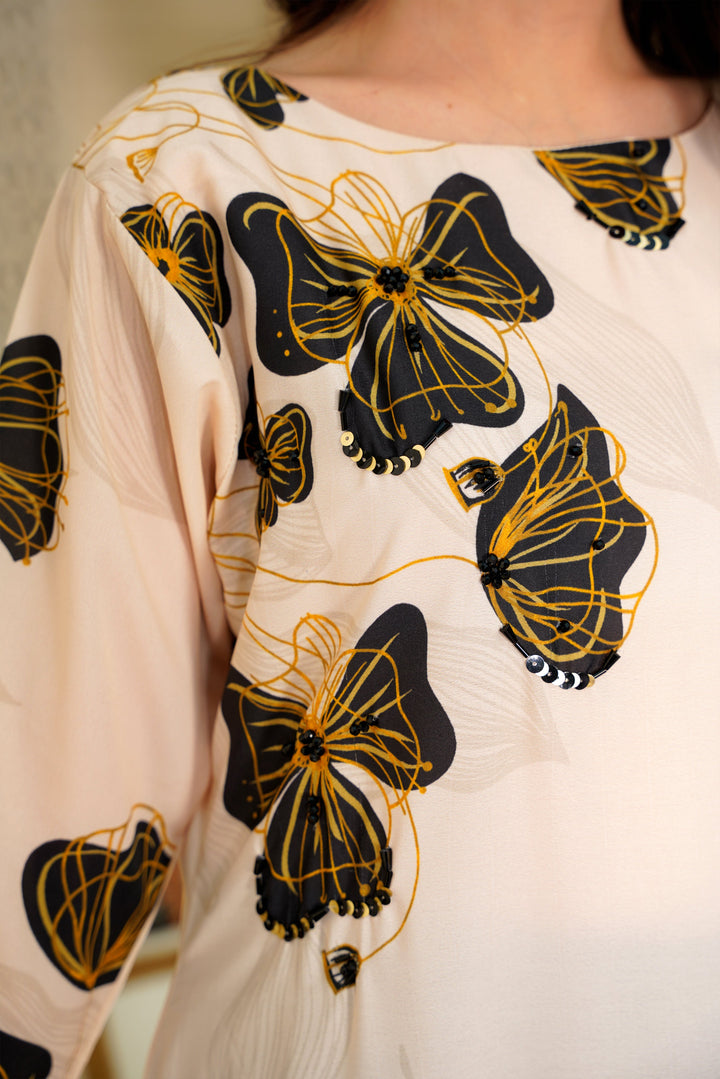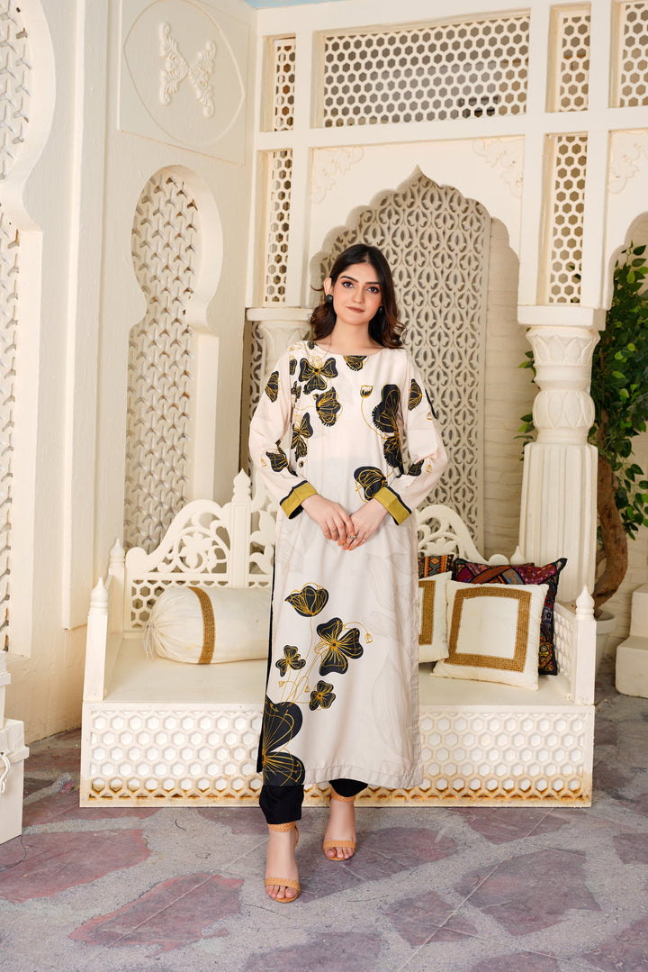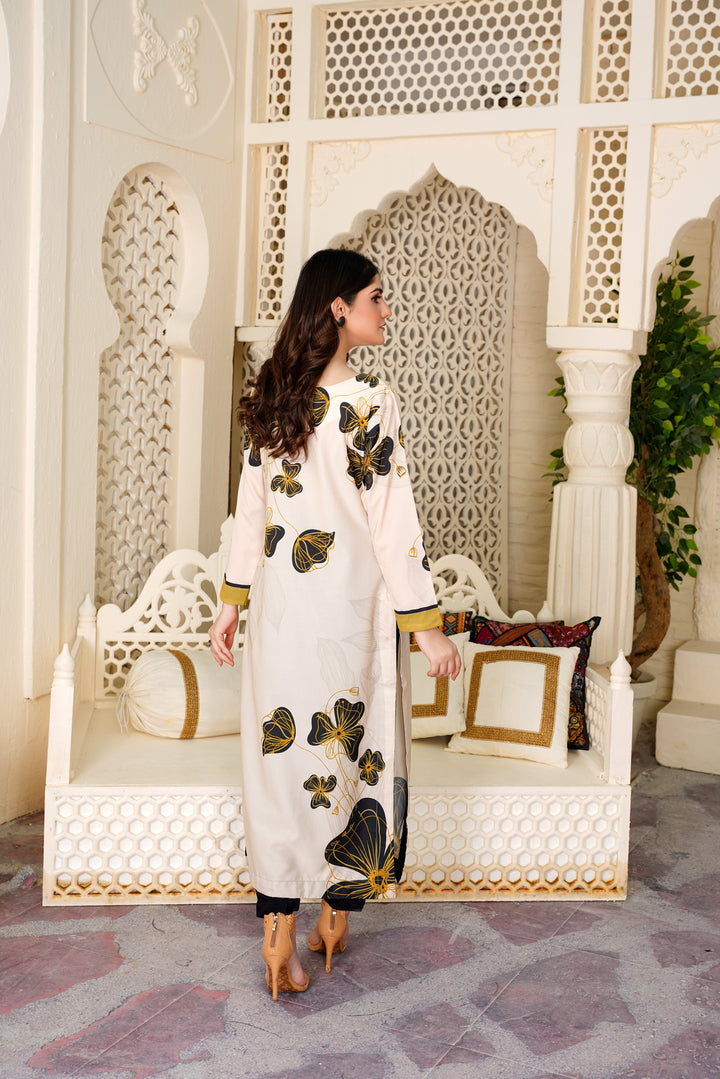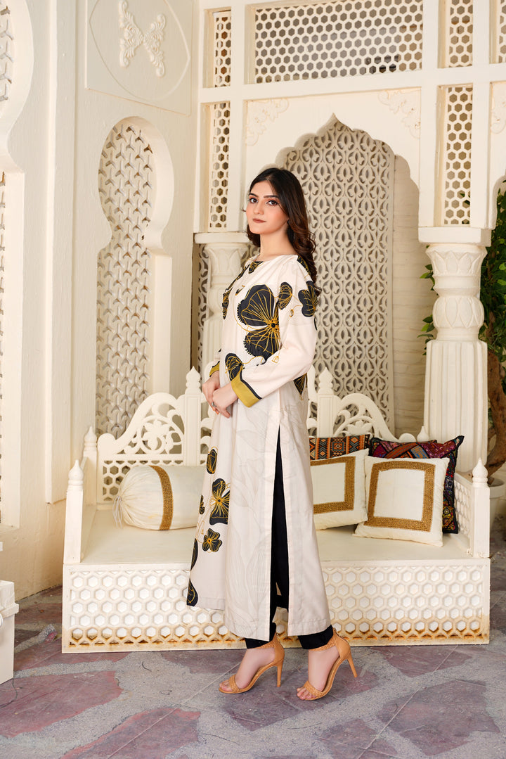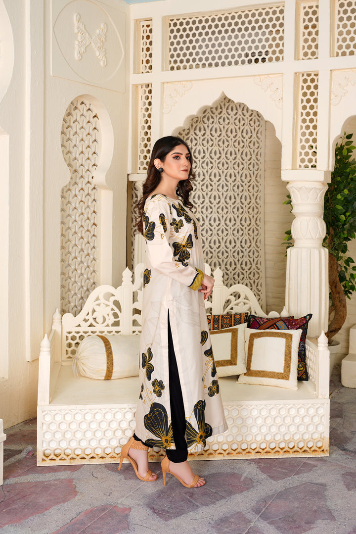 Introducing the Lavinia Creamy Hand-Worked Long Shirt – 357 by Athena Apparels—a timeless piece that embodies the essence of white dress designs Pakistani women adore. Crafted from premium fabric, this white embroidered dress showcases delicate handwork, adding a touch of sophistication to its flowing silhouette. The versatile design allows it to be styled as a white maxi dress Pakistani fashionistas seek or paired with trousers for a more traditional look. Whether you're attending a festive gathering or a formal event, this white colour dress offers elegance and comfort, making it a must-have addition to your wardrobe.