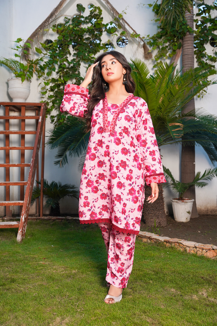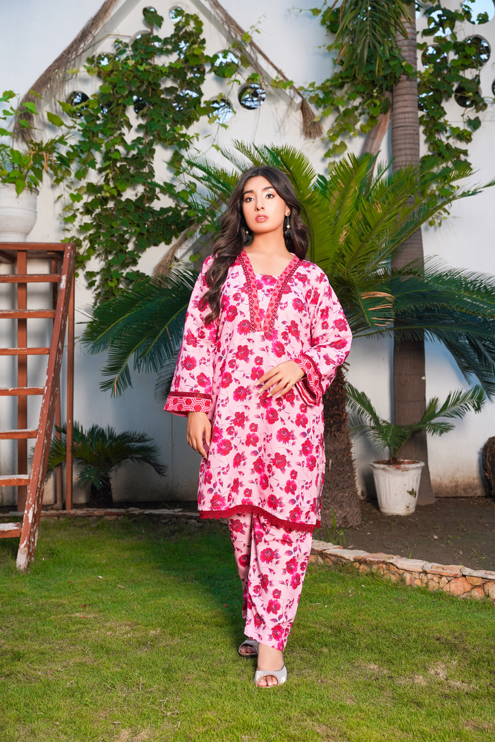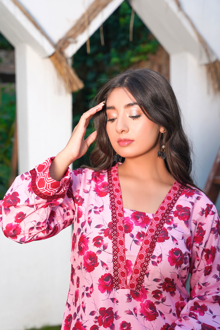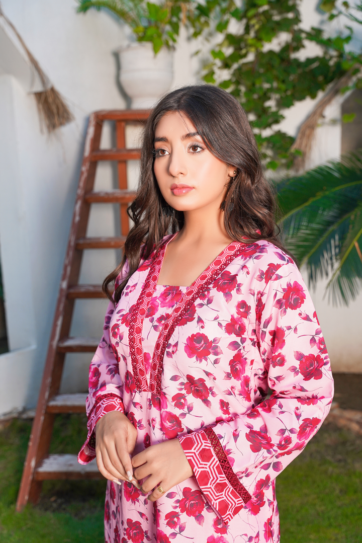 Step into understated elegance with the Marya Red And Pink Color Lawn, designed for those who adore subtle prints and sophisticated tones. This all over printed suit design features soft patterns on breathable lawn fabric, ideal for warmer days.