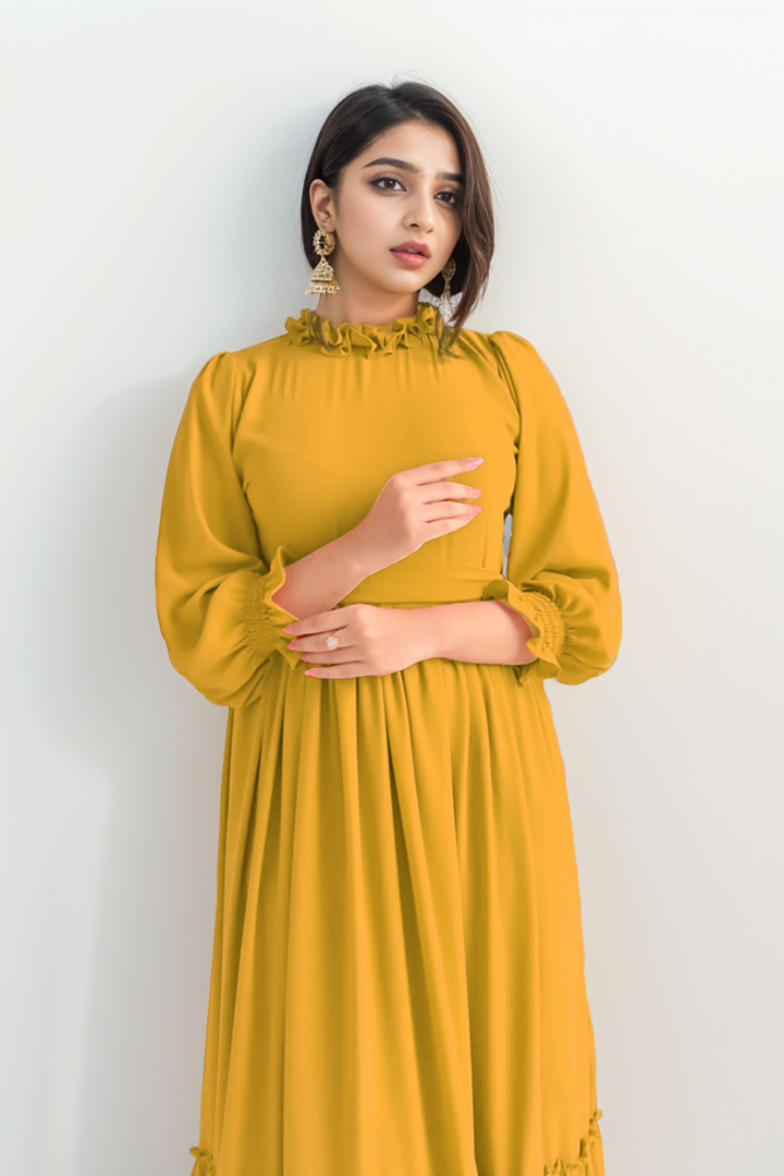 Elevate your everyday wardrobe with the Roma Mustard Co-Ord Set, a perfect blend of simplicity and style. This ensemble features a short frock design in a vibrant mustard hue, offering a fresh take on traditional attire.