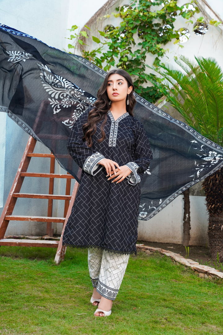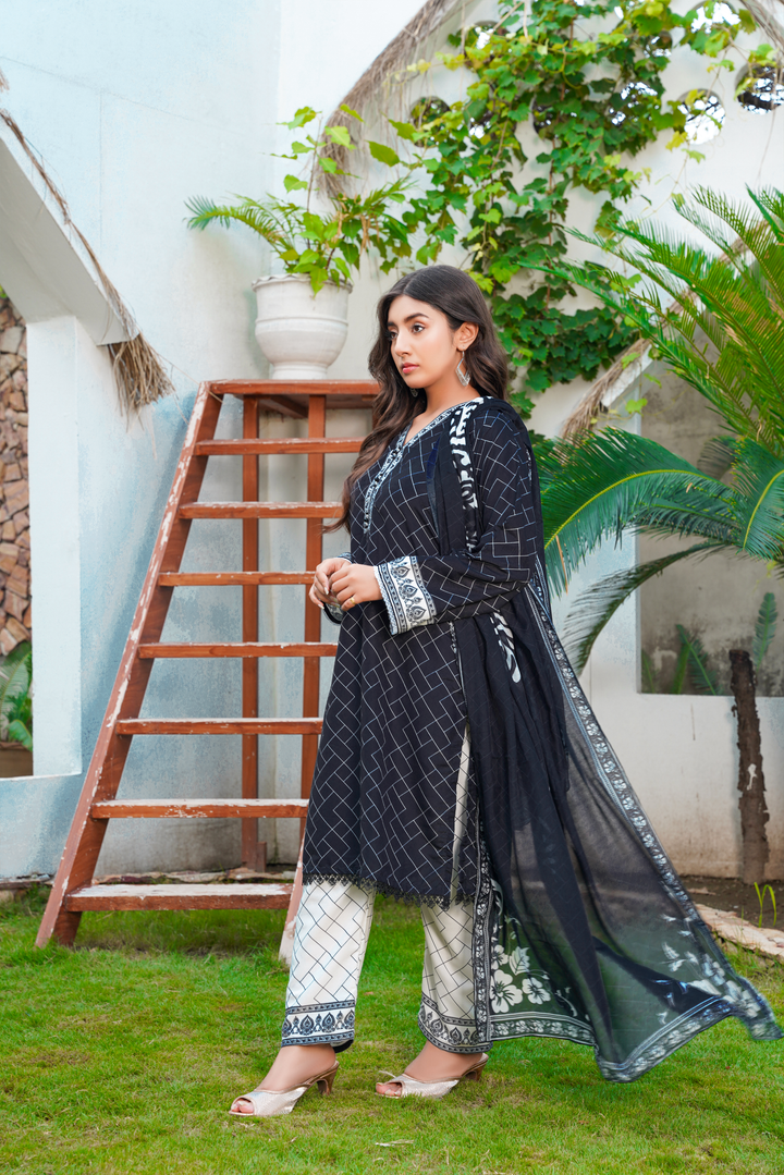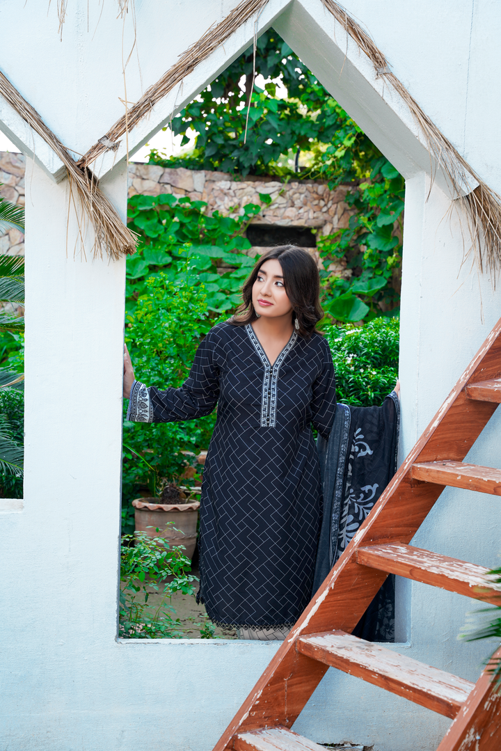 Crafted in a comfortable yet structured silhouette, this outfit is inspired by timeless 3 piece suit designs for ladies. Add your own dupatta or style it with statement jewelry to elevate the look for events or everyday wear.
