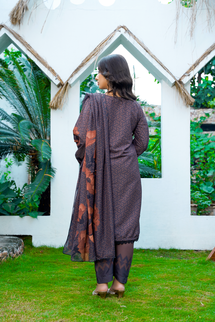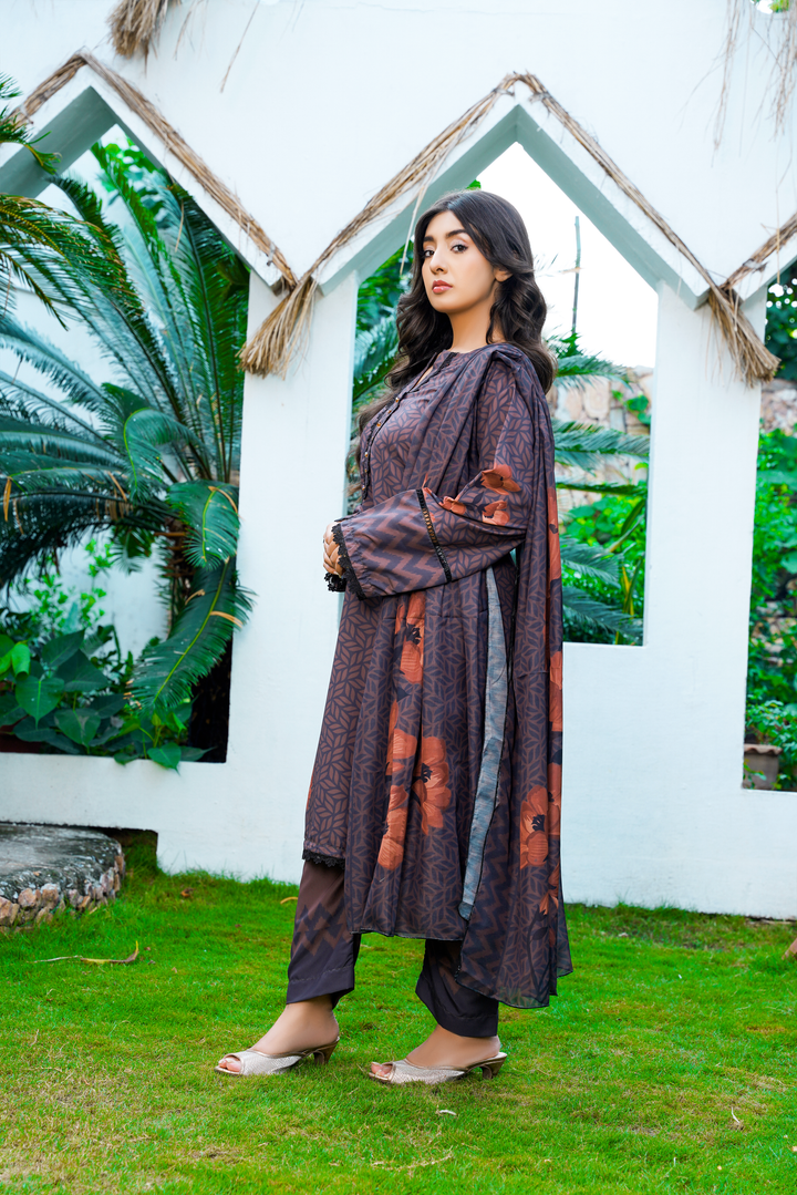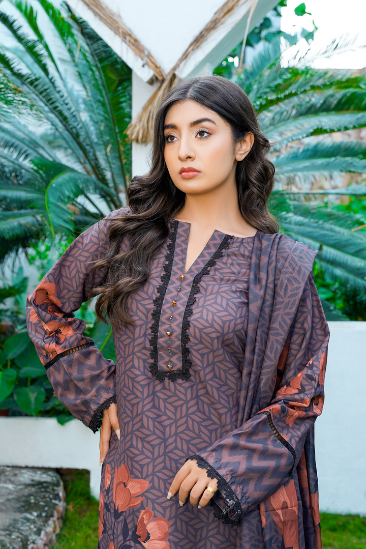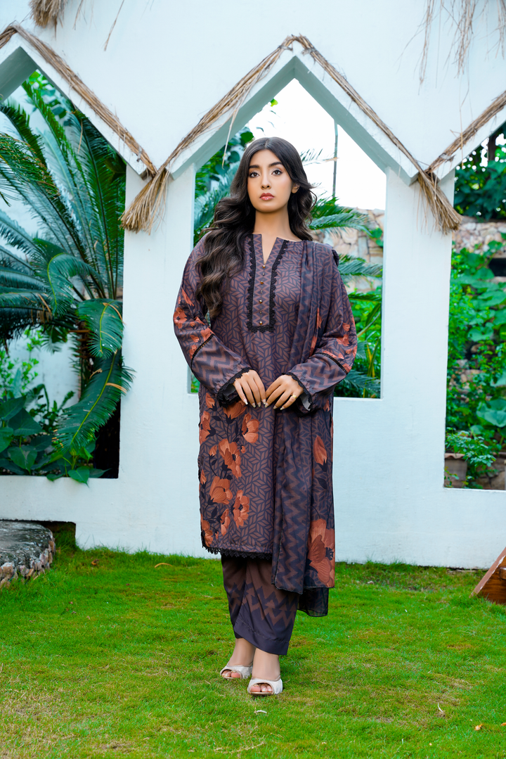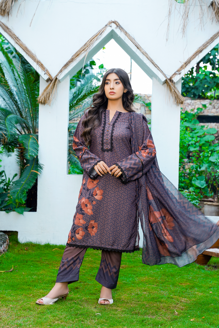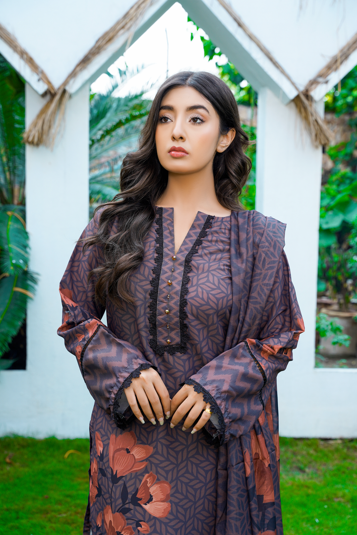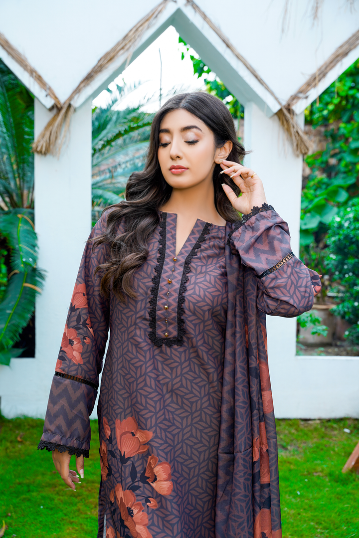 Refresh your summer wardrobe with our Lira Brown Lawn Dress, a standout from our summer lawn sale. This 3 piece readymade dress features a trendy yet timeless shalwar kameez design, perfect for everyday wear and light festive occasions.